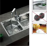 勿长时间将易生锈品与水槽接触,每次使用后将槽体清洗干净并用抹布擦干。尽量不让水滴留在水槽表面。